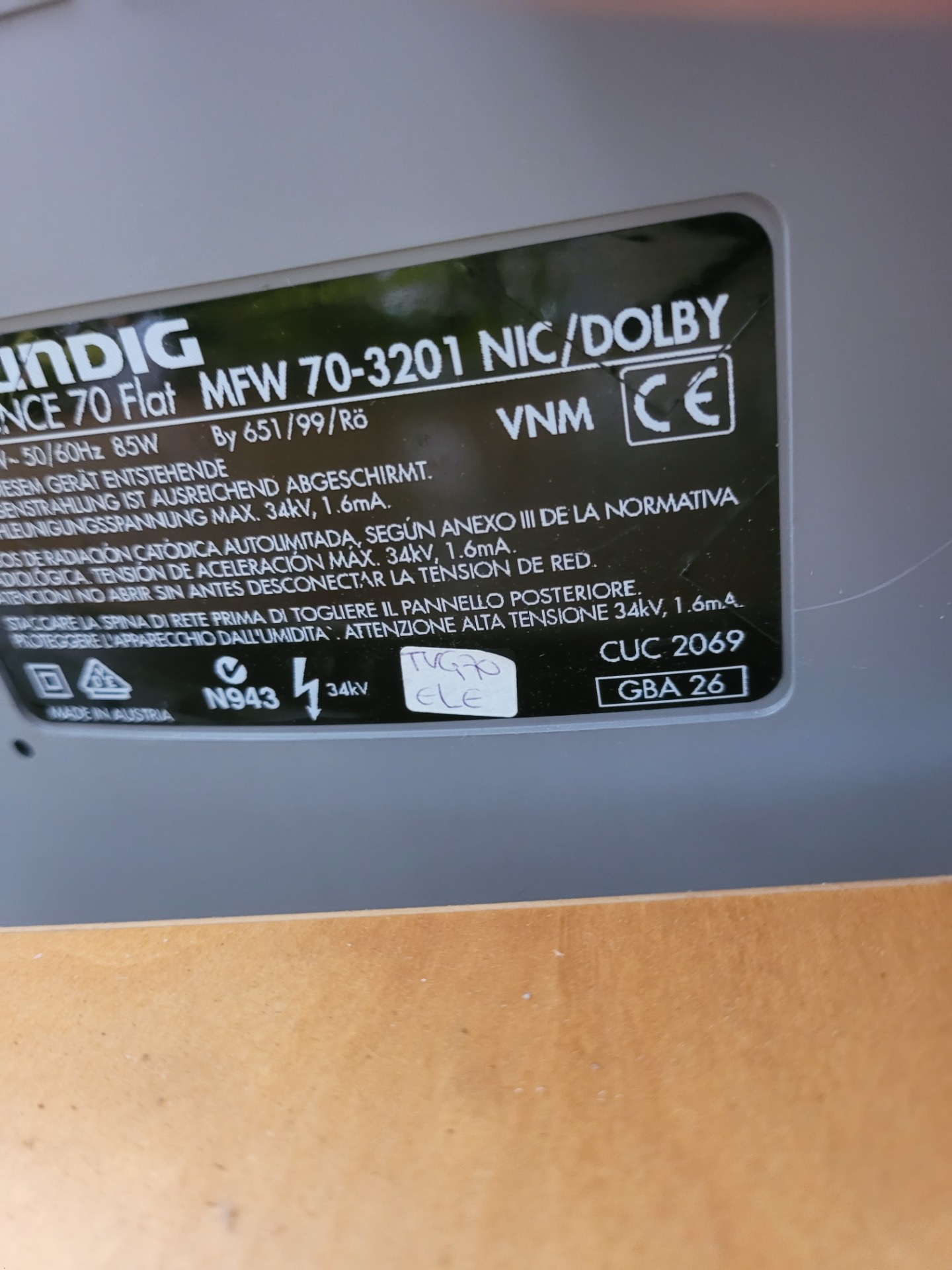 TV ELEGANCE MFW70-3201NIC DOLBY